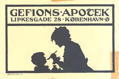 af kvinder der giver barn medicin med ske. Trykkeri: Bang & Tegner